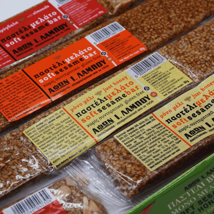 Μαλακό παστέλι. Το καβουρδισμένο φυσικό σουσάμι συνδυάζεται με τη ζάχαρη, τη γλυκόζη, το μέλι και το αμύγδαλο έτσι, έχετε στα χέρια σας ένα τρόφιμο για να γεμίσει τα κενά ενέργειας οποιοδήποτε στιγμή.